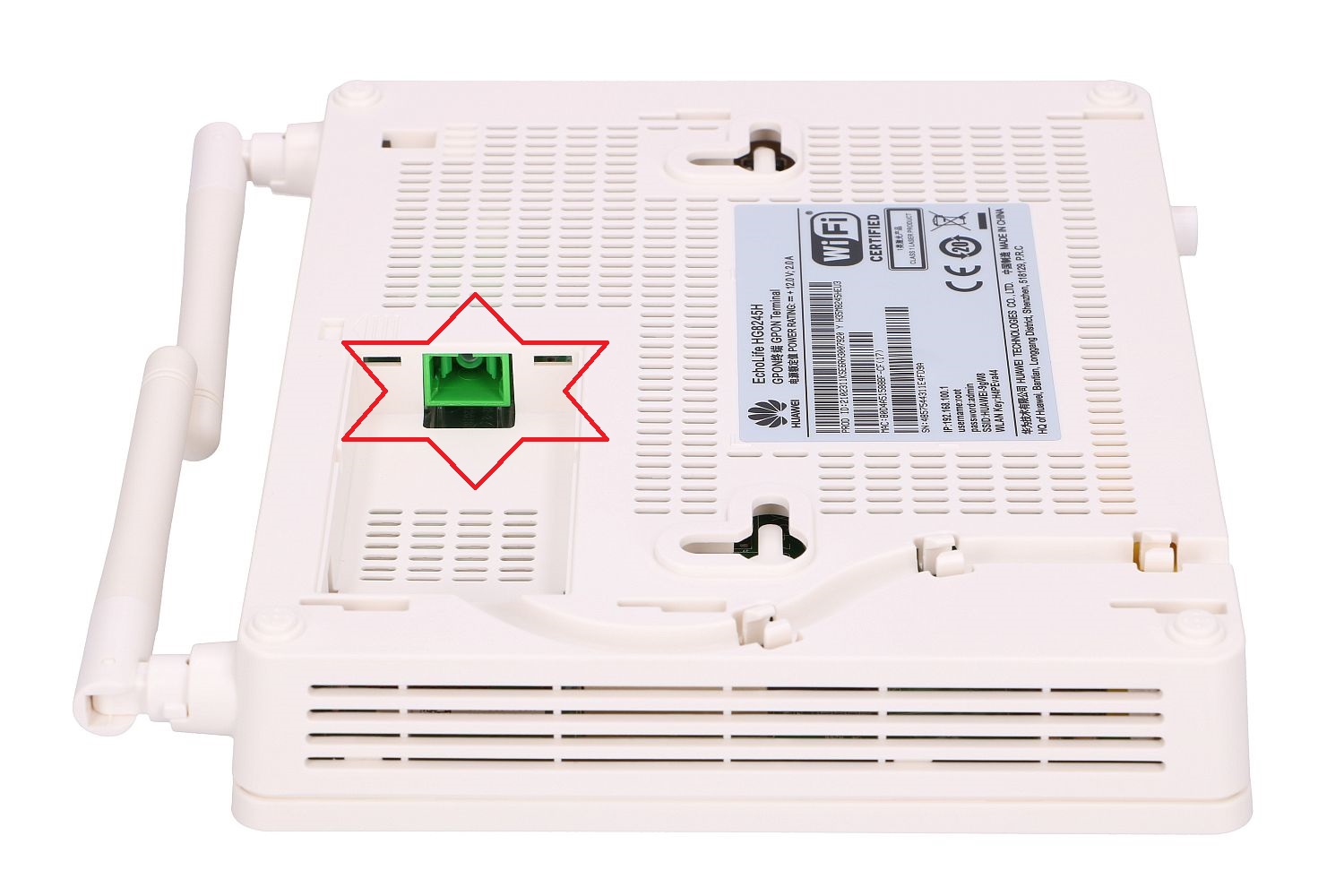 5- اورجینال بودن مودم هوایی : در کلیه نسخه های اصلی مودم هواویی ، پورت فیبر نوری به جهت جلوگیری از قطعی های مداوم ، در زیر دستگاه گنجانیده شده اند و تمامی مودم هایی که پورت فیبر نوری آنها در کنار پورت های شبکه هستند تقلبی بوده و به شدت در کارکرد دستگاه اختلال به وجود می آورند . نمونه اورجینال این دستگاه را در شکل ذیل رویت می کنید :